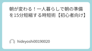 「あと15分寝ていたい」「朝はバタバタで余裕がない」……そんな一人暮らし初心者にこそ試してほしい、朝の準備を15分短縮する具体的な時短術をご紹介します。支度を「効率化」しながらも、生活の質は落とさないコツを解説します。1. 朝の支度を仕組み...